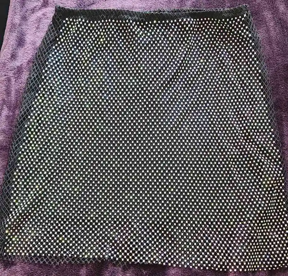 💫Check out this 🔥 Dreamofthe90s Black Rhinestone Skirt Blazer Suit Set - made with 🙌 quality polyester and spandex! Features a turn down collar blazer with a single button closure and rhinestone detail cuffs, paired with a sheer rhinestone above the knee high mini skirt. Perfect for dressing up this ☀️ summer and 🌷 spring!