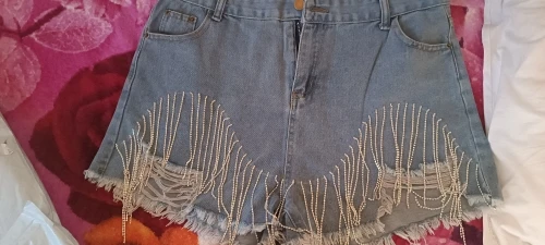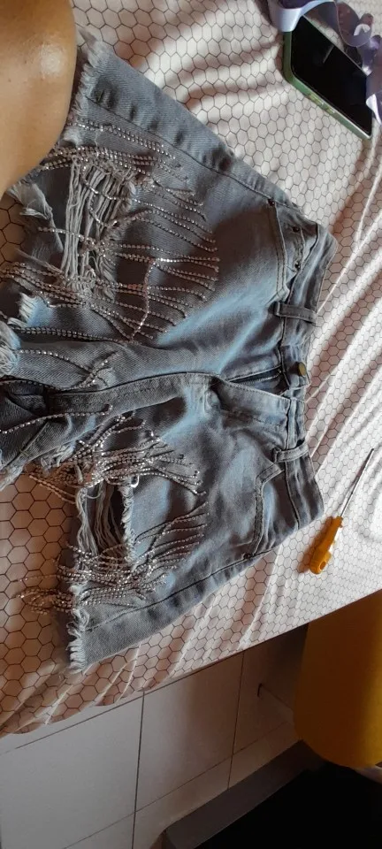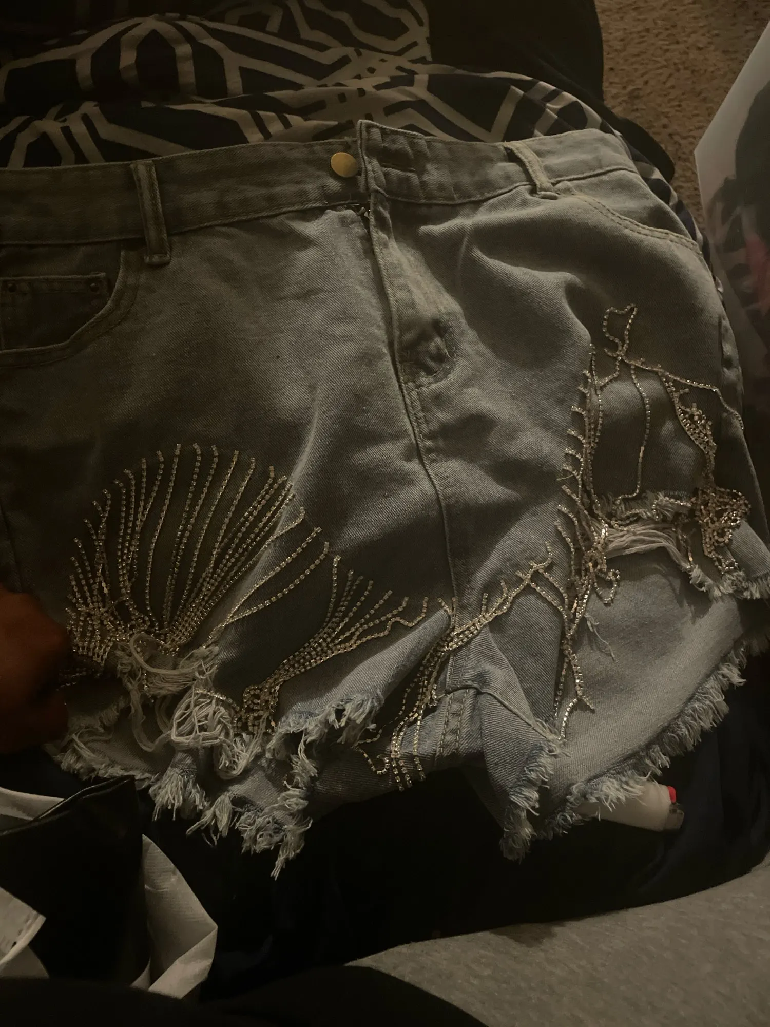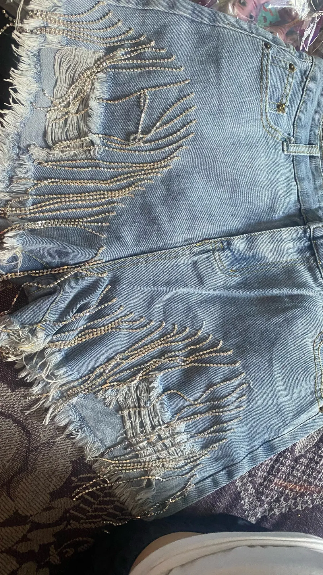Add some sparkle to your wardrobe with Dreamofthe90s Diamond Denim Shorts. These high-waisted shorts are made from premium cotton and polyester, and feature fun beading and tassel embellishments. The zipper fly closure adds convenience and style.