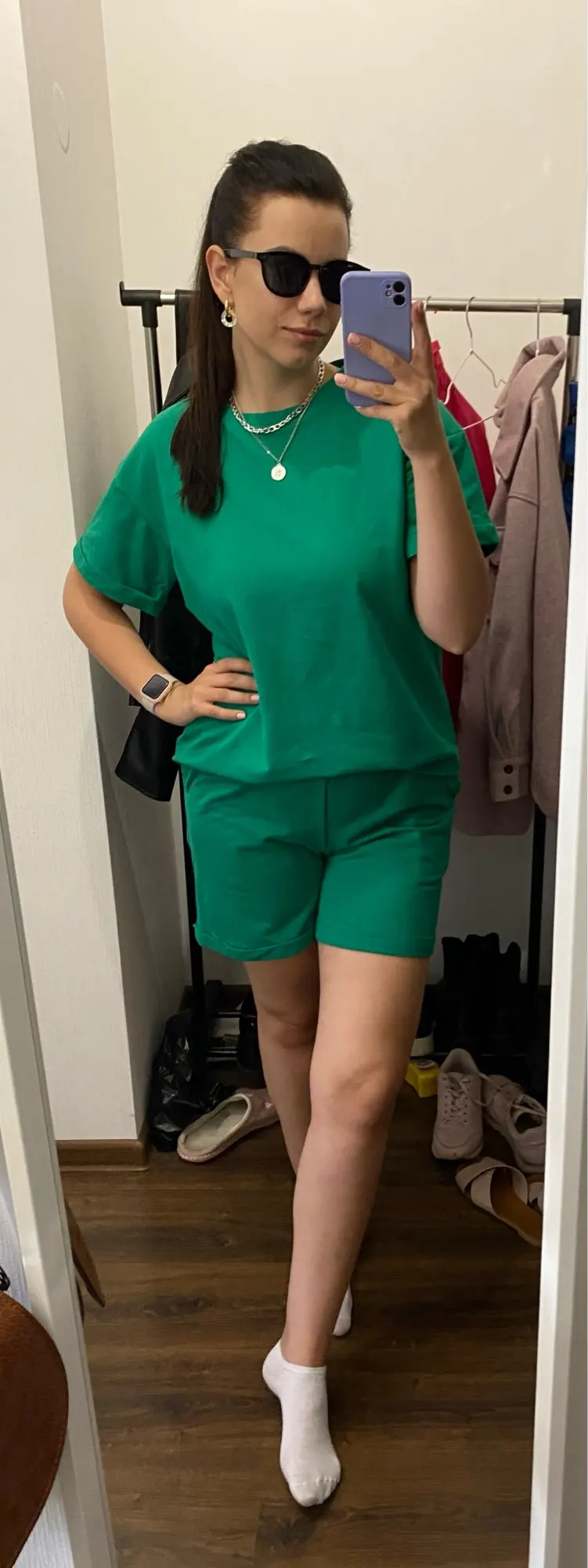 A quality suit made of dense jersey. At 88-76-96 took L. He sat down freely. I'm happy with the purchase.