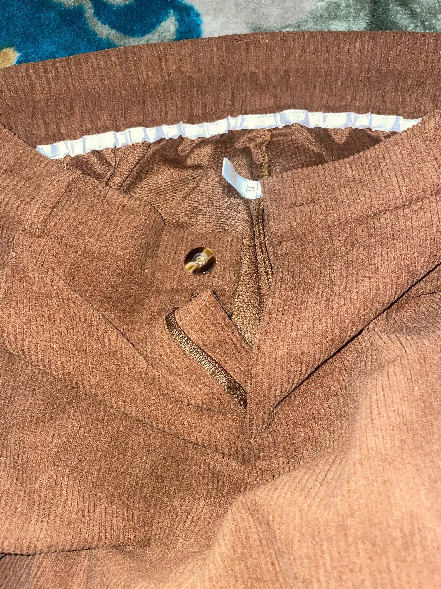 The shipping was fast! I’m always wearing L for pants but I chose XL and it fit good. It’s stretchy too so I think a L would have been good as well. It’s soft and comfortable. Definitely not Jean texture, it’s loose and not tough material. STILL LOOKS AMAZING. Will buy the other colors now because it’s super cute.